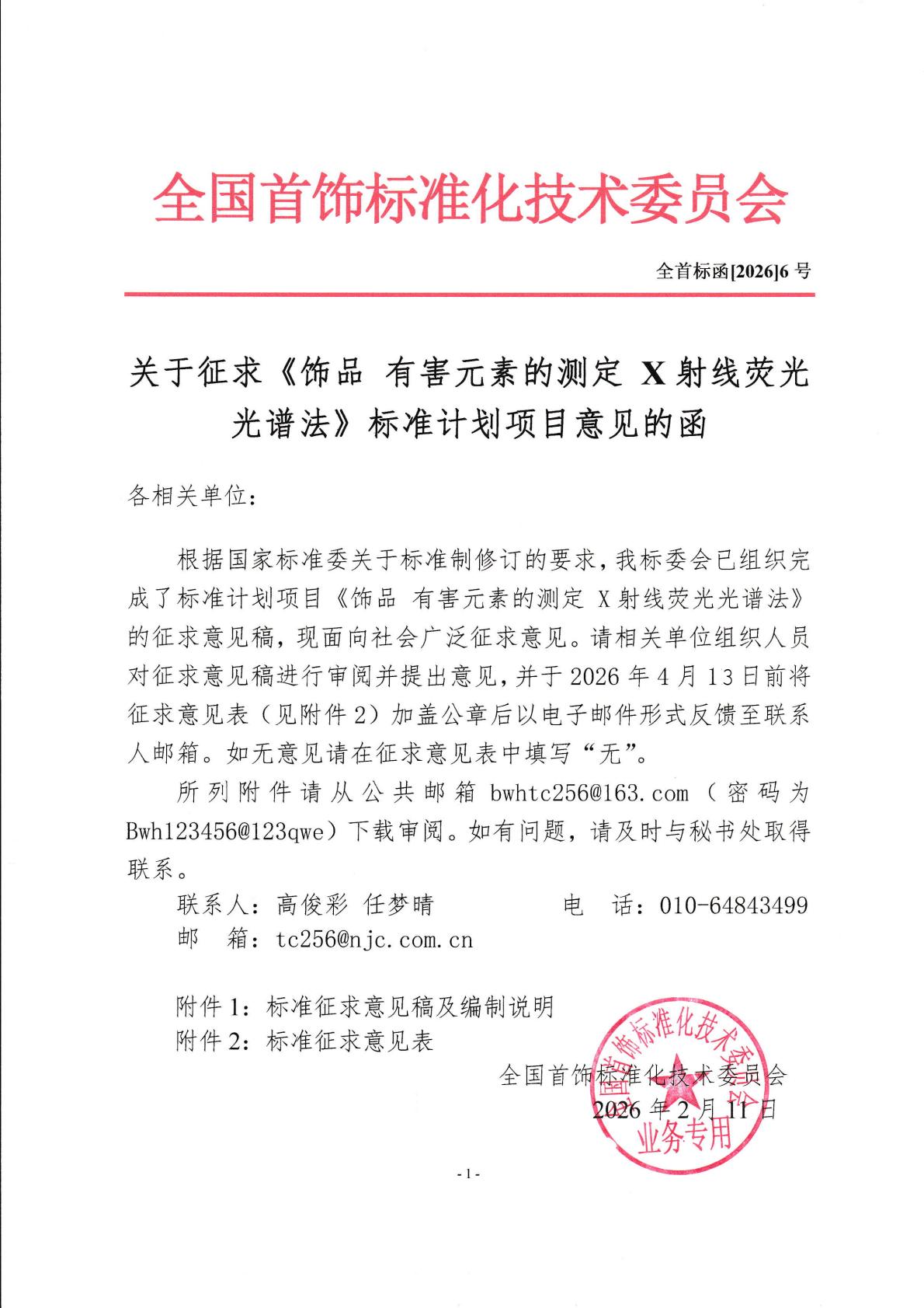 全国首饰标准化技术委员会 2026年2月13日 |