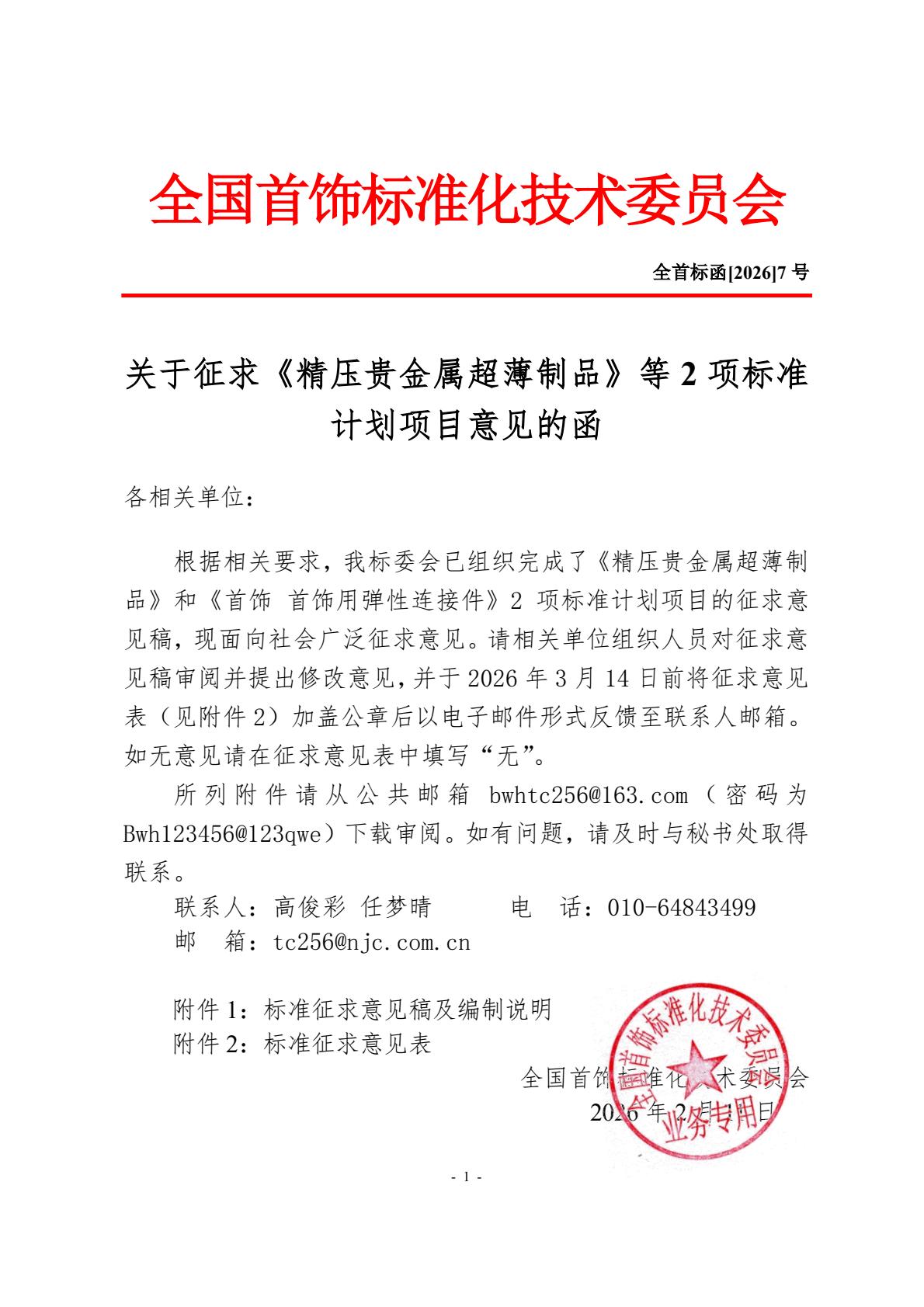 全国首饰标准化技术委员会 2026年2月13日 |